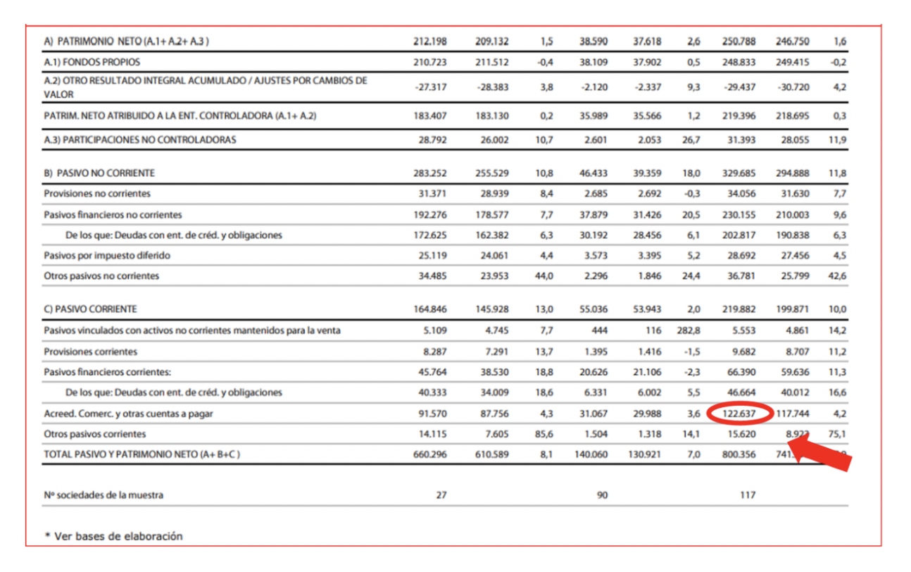 Madrid, 3 de abril de 2020.- La Plataforma Multisectorial contra la Morosidad (PMcM) ha revisado los balances del sector no financiero del IBEX 35 y el resto del mercado continuo a partir de los datos publicados por la Comisión Nacional del Mercado de Valores (CNMV), y ha detectado que a 31 de diciembre de 2019 las compañías del Mercado Continuo tienen facturas pendientes de pagar a sus proveedores por valor de 122.000 millones de euros.