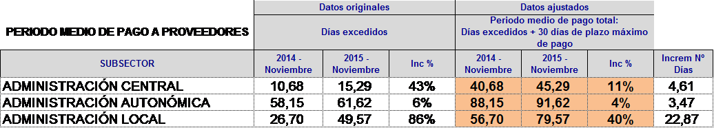 Madrid, 29 de enero de 2016.- La Plataforma Multisectorial contra la Morosidad (PMcM) ha hecho referencia a los datos publicados por el Ministerio de Hacienda sobre los plazos medios de pago a proveedores por parte de las Administraciones Públicas relativos al periodo de noviembre de 2014 a noviembre de 2015, que ponen de manifiesto el nuevo incremento de la morosidad, muy lejos del plazo legal.